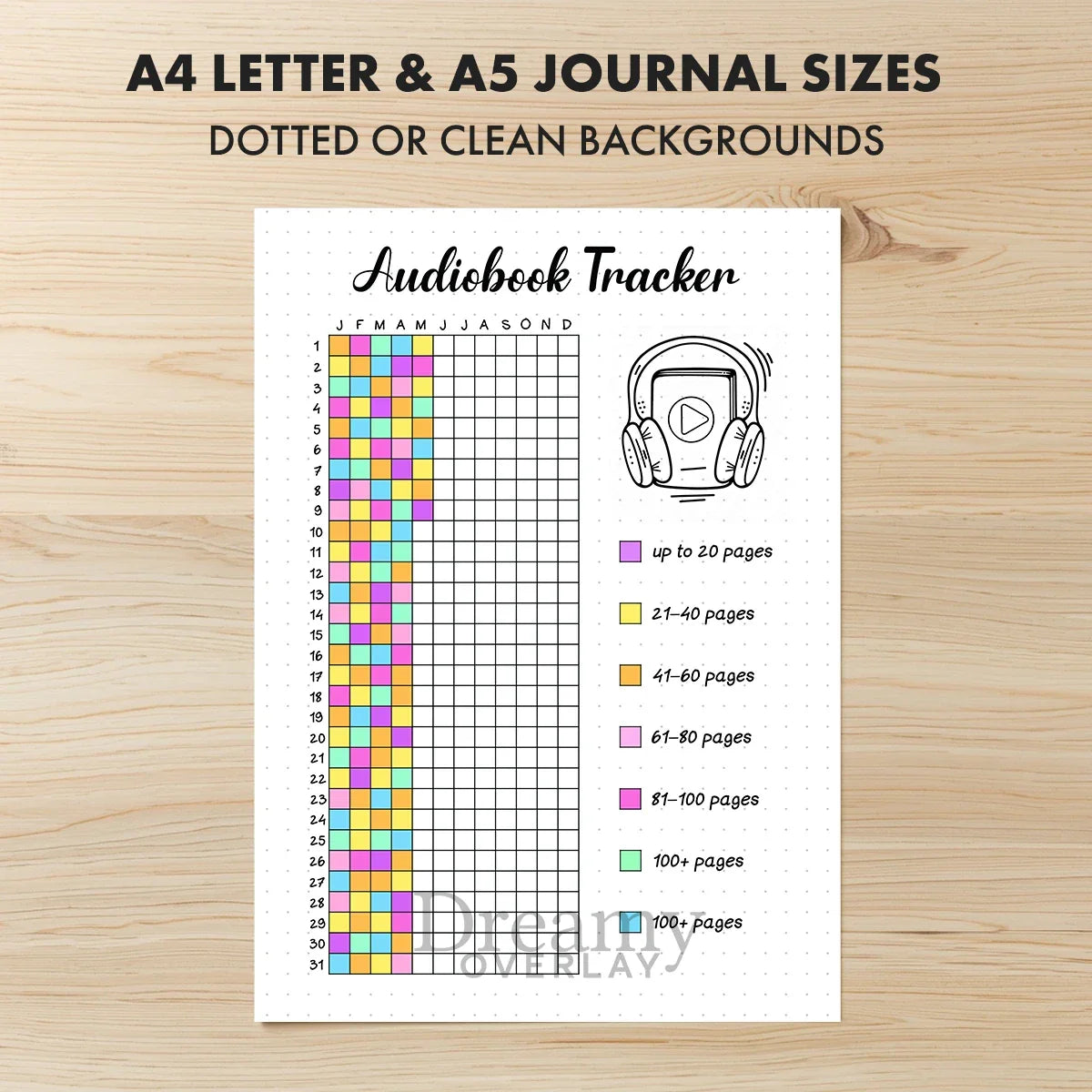 Track your audiobook listening with this printable Audiobook Tracker journal page.