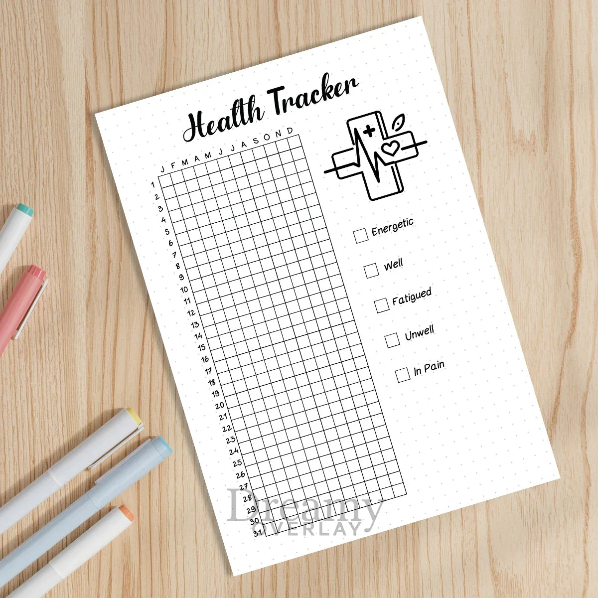 This printable Health Tracker journal page helps you monitor daily wellness habits in one place.