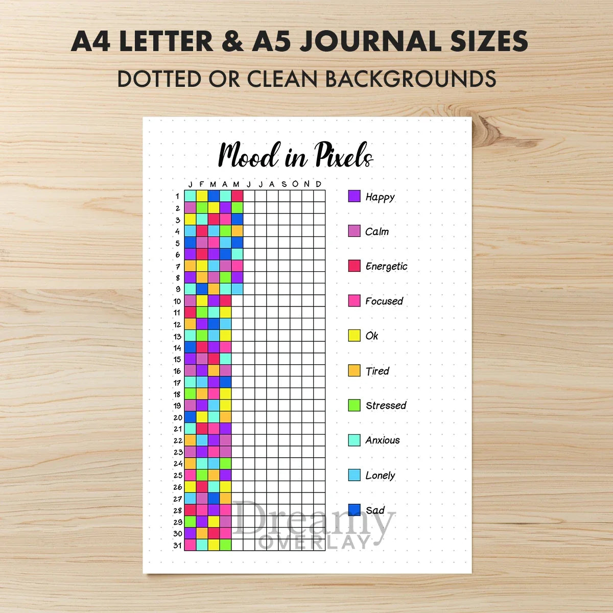Track your moods visually with this printable Mood in Pixels Tracker journal page.